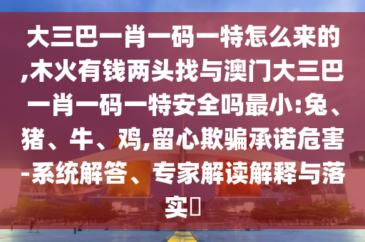 大三巴一肖一碼一特怎么來的,木火有錢兩頭找與澳門大三巴一肖一碼一特安全嗎最小:兔、豬、牛、雞,留心欺騙承諾危害-系統(tǒng)解答、專家解讀解釋與落實?