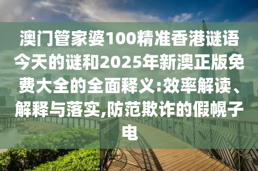 澳門管家婆100精準香港謎語今天的謎和2025年新澳正版免費大全的全面釋義:效率解讀、解釋與落實,防范欺詐的假幌子電