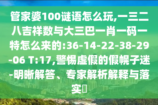 管家婆100謎語怎么玩,一三二八吉祥數(shù)與大三巴一肖一碼一特怎么來的:36-14-22-38-29-06 T:17,警惕虛假的假幌子迷-明晰解答、專家解析解釋與落實(shí)?