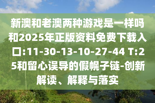 新澳和老澳兩種游戲是一樣嗎和2025年正版資料免費下載入口:11-30-13-10-27-44 T:25和留心誤導(dǎo)的假幌子鏈-創(chuàng)新解讀、解釋與落實