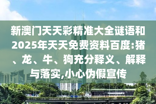 關于拆穿新澳門天天彩精準大全謎語、2025年天天免費資料和豬、龍、牛、狗等關鍵詞的充分釋義、解釋與落實,以及警惕虛假宣傳的解析