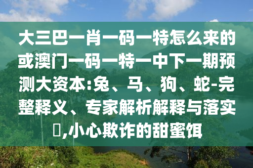 大三巴一肖一碼一特怎么來(lái)的或澳門(mén)一碼一特一中下一期預(yù)測(cè)大資本:兔、馬、狗、蛇-完整釋義、專(zhuān)家解析解釋與落實(shí)?,小心欺詐的甜蜜餌