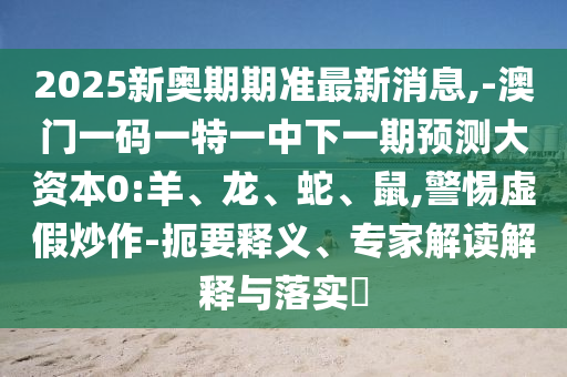 2025新奧期期準(zhǔn)最新消息,-澳門(mén)一碼一特一中下一期預(yù)測(cè)大資本0:羊、龍、蛇、鼠,警惕虛假炒作-扼要釋義、專(zhuān)家解讀解釋與落實(shí)?