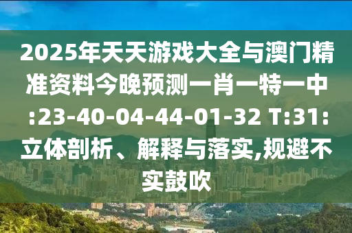 2025年天天游戲大全與澳門精準(zhǔn)資料今晚預(yù)測一肖一特一中:23-40-04-44-01-32 T:31:立體剖析、解釋與落實(shí),規(guī)避不實(shí)鼓吹
