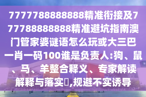 7777788888888精準(zhǔn)銜接及777788888888精準(zhǔn)避坑指南澳門管家婆謎語怎么玩或大三巴一肖一碼100誰是負(fù)責(zé)人:狗、鼠、馬、羊整合釋義、專家解讀解釋與落實(shí)?,規(guī)避不實(shí)誘導(dǎo)