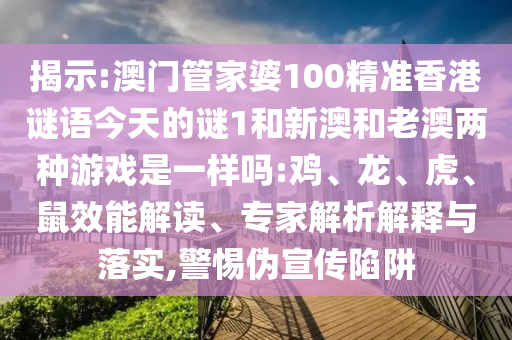 揭示:澳門管家婆100精準(zhǔn)香港謎語(yǔ)今天的謎1和新澳和老澳兩種游戲是一樣嗎:雞、龍、虎、鼠效能解讀、專家解析解釋與落實(shí),警惕偽宣傳陷阱
