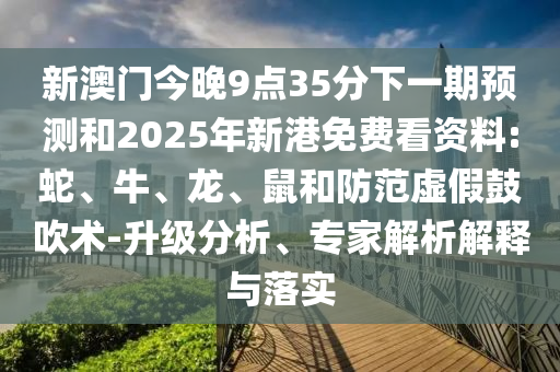新澳門今晚9點(diǎn)35分下一期預(yù)測(cè)和2025年新港免費(fèi)看資料:蛇、牛、龍、鼠和防范虛假鼓吹術(shù)-升級(jí)分析、專家解析解釋與落實(shí)
