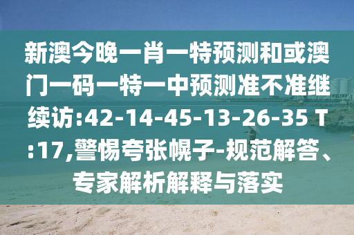 新澳今晚一肖一特預(yù)測和或澳門一碼一特一中預(yù)測準(zhǔn)不準(zhǔn)繼續(xù)訪:42-14-45-13-26-35 T:17,警惕夸張幌子-規(guī)范解答、專家解析解釋與落實