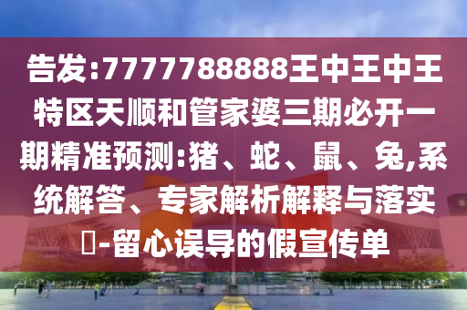 告發(fā):7777788888王中王中王特區(qū)天順和管家婆三期必開一期精準(zhǔn)預(yù)測:豬、蛇、鼠、兔,系統(tǒng)解答、專家解析解釋與落實?-留心誤導(dǎo)的假宣傳單