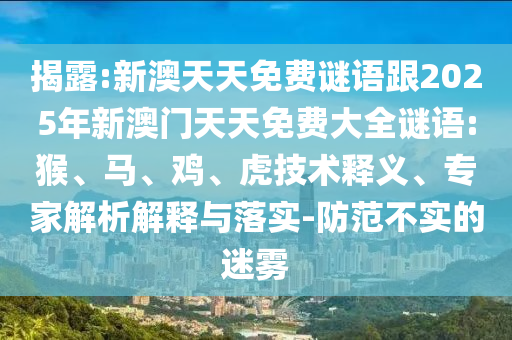 揭露:新澳天天免費(fèi)謎語跟2025年新澳門天天免費(fèi)大全謎語:猴、馬、雞、虎技術(shù)釋義、專家解析解釋與落實(shí)-防范不實(shí)的迷霧