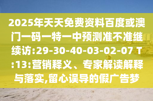 2025年天天免費資料百度或澳門一碼一特一中預(yù)測準(zhǔn)不準(zhǔn)繼續(xù)訪:29-30-40-03-02-07 T:13:營銷釋義、專家解讀解釋與落實,留心誤導(dǎo)的假廣告夢