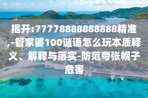 摘要:,,本文揭示了數(shù)字組合“77778888888888精準(zhǔn)”和“管家婆100謎語(yǔ)”的本質(zhì)含義及玩法,同時(shí)強(qiáng)調(diào)了防范夸張宣傳的重要性。文章解釋了這些數(shù)字和游戲的真實(shí)含義,提醒公眾注意防范可能的虛假宣傳危害,避免陷入不必要的風(fēng)險(xiǎn)。