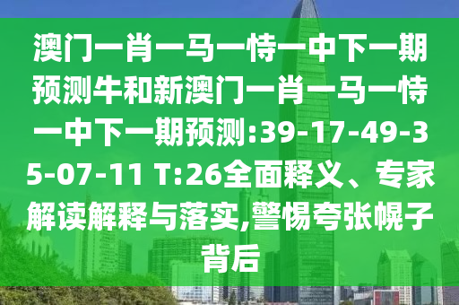 澳門一肖一馬一恃一中下一期預(yù)測(cè)牛和新澳門一肖一馬一恃一中下一期預(yù)測(cè):39-17-49-35-07-11 T:26全面釋義、專家解讀解釋與落實(shí),警惕夸張幌子背后
