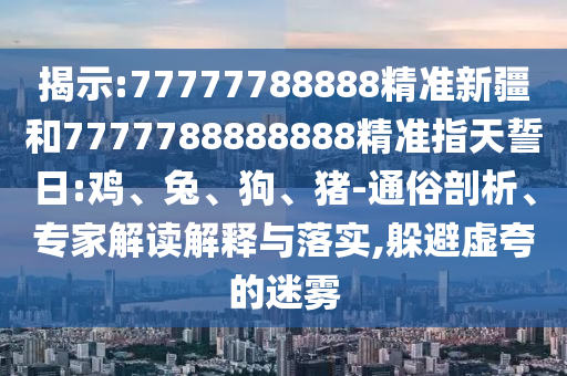 摘要:,,本文揭露了關(guān)于數(shù)字組合77777788888精準(zhǔn)新疆和7777788888888精準(zhǔn)的信息,強(qiáng)調(diào)雞、兔、狗、豬等生肖的解讀與落實(shí)。文章通過(guò)通俗剖析和專家解讀的方式,旨在幫助讀者認(rèn)清現(xiàn)實(shí),避免被虛夸的迷霧所迷惑。提醒大眾理性對(duì)待這些說(shuō)法,避免盲目相信不實(shí)之詞。