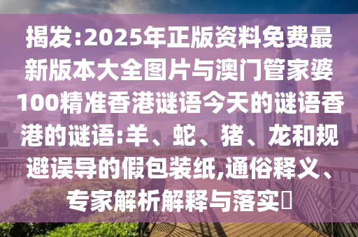 揭發(fā):2025年正版資料免費(fèi)最新版本大全圖片與澳門管家婆100精準(zhǔn)香港謎語(yǔ)今天的謎語(yǔ)香港的謎語(yǔ):羊、蛇、豬、龍和規(guī)避誤導(dǎo)的假包裝紙,通俗釋義、專家解析解釋與落實(shí)?