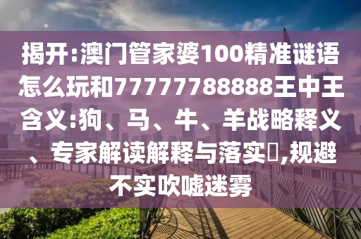 揭開:澳門管家婆100精準(zhǔn)謎語怎么玩和77777788888王中王含義:狗、馬、牛、羊戰(zhàn)略釋義、專家解讀解釋與落實(shí)?,規(guī)避不實(shí)吹噓迷霧