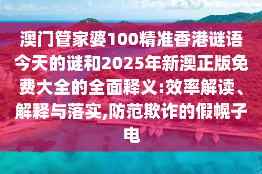 澳門管家婆100精準香港謎語今天的謎和2025年新澳正版免費大全的全面釋義:效率解讀、解釋與落實,防范欺詐的假幌子電