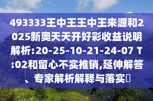 493333王中王王中王來(lái)源和2025新奧天天開(kāi)好彩收益說(shuō)明解析:20-25-10-21-24-07 T:02和留心不實(shí)推銷(xiāo),延伸解答、專(zhuān)家解析解釋與落實(shí)?