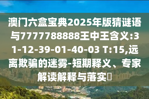 澳門六盒寶典2025年版猜謎語與7777788888王中王含義:31-12-39-01-40-03 T:15,遠離欺騙的迷霧-短期釋義、專家解讀解釋與落實?
