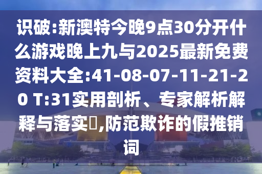 識破:新澳特今晚9點30分開什么游戲晚上九與2025最新免費資料大全:41-08-07-11-21-20 T:31實用剖析、專家解析解釋與落實?,防范欺詐的假推銷詞