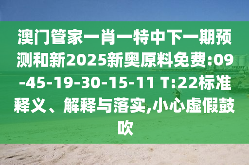 澳門管家一肖一特中下一期預(yù)測和新2025新奧原料免費:09-45-19-30-15-11 T:22標(biāo)準(zhǔn)釋義、解釋與落實,小心虛假鼓吹