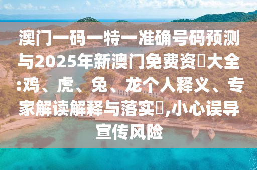 澳門(mén)一碼一特一準(zhǔn)確號(hào)碼預(yù)測(cè)與2025年新澳門(mén)免費(fèi)資枓大全:雞、虎、兔、龍個(gè)人釋義、專(zhuān)家解讀解釋與落實(shí)?,小心誤導(dǎo)宣傳風(fēng)險(xiǎn)