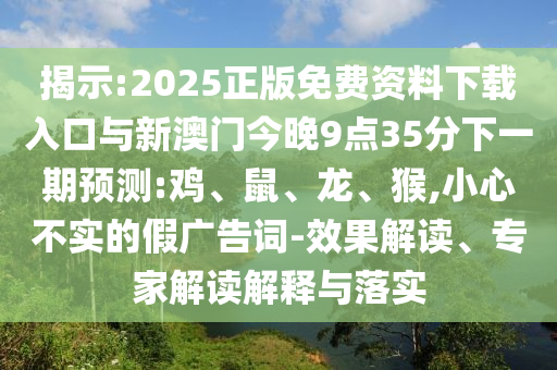 關(guān)于揭示“正版免費(fèi)資料下載入口”、“新澳門今晚9點(diǎn)35分下一期預(yù)測(cè)”、“雞、鼠、龍、猴效果解讀”、“專家解讀解釋與落實(shí)”以及警惕虛假宣傳的文章