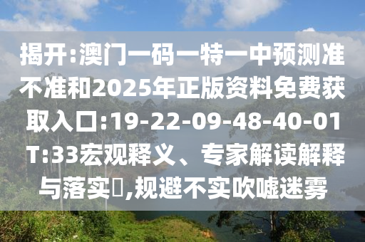 澳門一碼一特一中預(yù)測準(zhǔn)不準(zhǔn)和2025年正版資料免費(fèi)獲取入口:19-22-09-48-40-01 T:33的宏觀釋義、專家解讀解釋與落實(shí)?