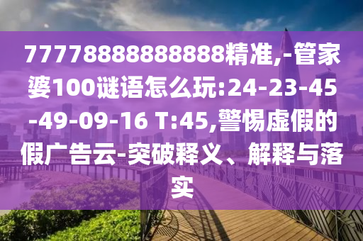 關于關鍵詞“777788888888精準,-管家婆100謎語怎么玩:24-23-45-49-09-16 T:45突破”的釋義、解釋與落實,以及警惕虛假宣傳提醒