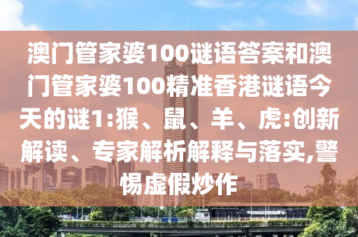 澳門管家婆100謎語答案和澳門管家婆100精準香港謎語今天的謎1:猴、鼠、羊、虎:創(chuàng)新解讀、專家解析解釋與落實,警惕虛假炒作
