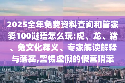 關(guān)于曝光“2025全年免費(fèi)資料查詢”和“管家婆100謎語怎么玩:虎、龍、豬、兔”以及警惕虛假假營銷案的文化釋義、專家解讀解釋與落實(shí)的文章