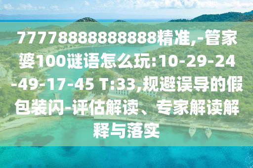 77778888888888精準,-管家婆100謎語怎么玩:10-29-24-49-17-45 T:33,規(guī)避誤導的假包裝閃-評估解讀、專家解讀解釋與落實