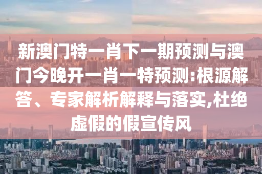 新澳門特一肖下一期預(yù)測與澳門今晚開一肖一特預(yù)測:根源解答、專家解析解釋與落實,杜絕虛假的假宣傳風(fēng)
