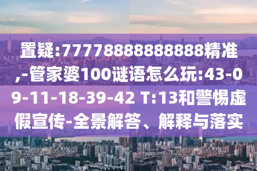 置疑:777788888888精準(zhǔn),-管家婆100謎語(yǔ)怎么玩:43-09-11-18-39-42 T:13-全景解答、解釋與落實(shí)”這一話題,我們可以從全面釋義、專家解讀與落實(shí)、警惕虛假宣傳等方面進(jìn)行深入探討。