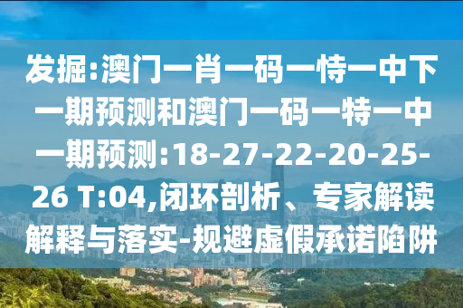 發(fā)掘:澳門一肖一碼一恃一中下一期預(yù)測和澳門一碼一特一中一期預(yù)測:18-27-22-20-25-26 T:04,閉環(huán)剖析、專家解讀解釋與落實-規(guī)避虛假承諾陷阱