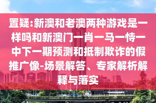 新澳和老澳兩種游戲是否一樣以及新澳門一肖一馬一恃一中下一期預測的場景解答、專家解析解釋與落實,并抵制欺詐的假推廣