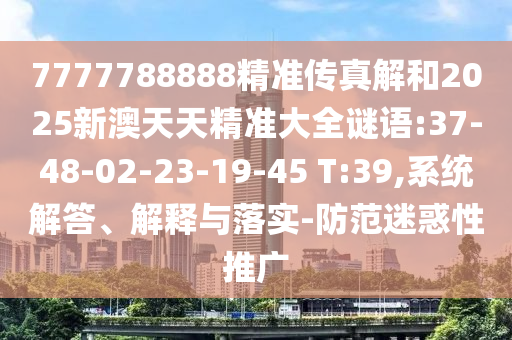 7777788888精準傳真解和2025新澳天天精準大全謎語:37-48-02-23-19-45 T:39,系統(tǒng)解答、解釋與落實-防范迷惑性推廣