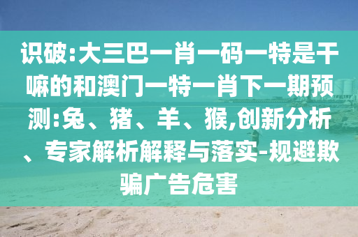 識(shí)破:大三巴一肖一碼一特是干嘛的和澳門一特一肖下一期預(yù)測(cè):兔、豬、羊、猴,創(chuàng)新分析、專家解析解釋與落實(shí)-規(guī)避欺騙廣告危害