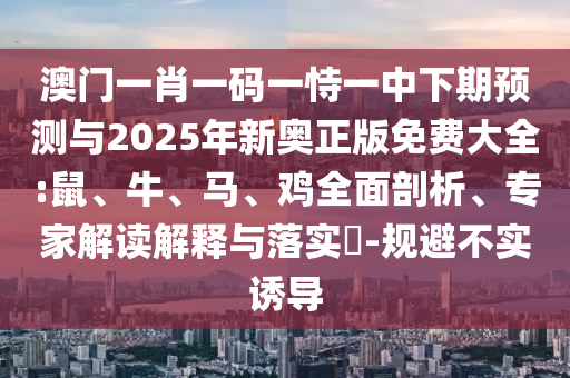 澳門一肖一碼一恃一中下期預測與2025年新奧正版免費大全:鼠、牛、馬、雞全面剖析、專家解讀解釋與落實?-規(guī)避不實誘導