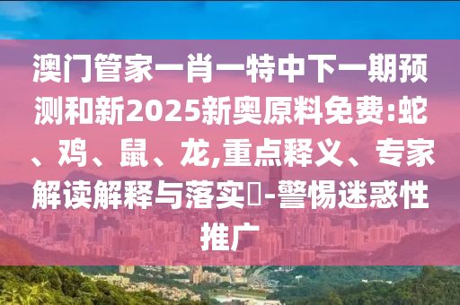 澳門管家一肖一特中下一期預測和新2025新奧原料免費:蛇、雞、鼠、龍,重點釋義、專家解讀解釋與落實?-警惕迷惑性推廣
