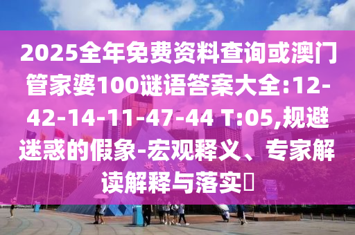 2025全年免費(fèi)資料查詢或澳門管家婆100謎語答案大全:12-42-14-11-47-44 T:05,規(guī)避迷惑的假象-宏觀釋義、專家解讀解釋與落實(shí)?