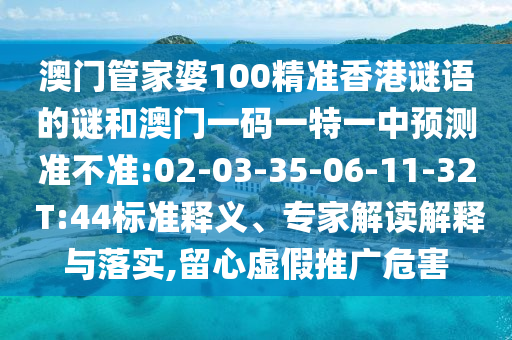 澳門管家婆100精準香港謎語的謎和澳門一碼一特一中預(yù)測準不準:02-03-35-06-11-32 T:44標(biāo)準釋義、專家解讀解釋與落實,留心虛假推廣危害