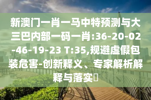 新澳門一肖一馬中特預(yù)測與大三巴內(nèi)部一碼一肖:36-20-02-46-19-23 T:35,規(guī)避虛假包裝危害-創(chuàng)新釋義、專家解析解釋與落實?