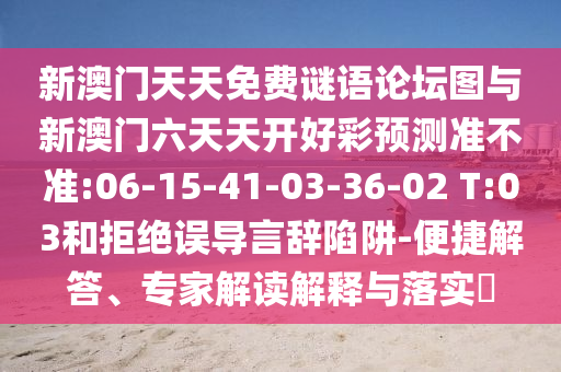 新澳門天天免費(fèi)謎語(yǔ)論壇圖與新澳門六天天開(kāi)好彩預(yù)測(cè)準(zhǔn)不準(zhǔn):06-15-41-03-36-02 T:03和拒絕誤導(dǎo)言辭陷阱-便捷解答、專家解讀解釋與落實(shí)?