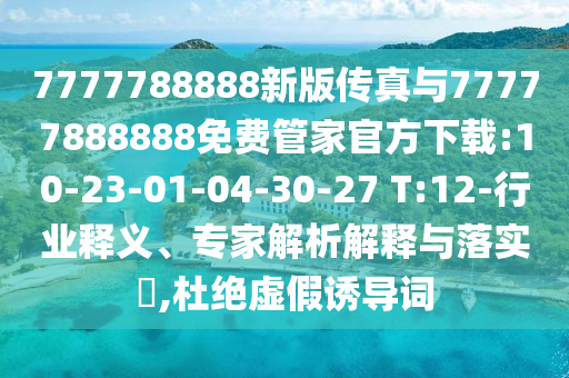 7777788888新版?zhèn)髡媾c77777888888免費(fèi)管家官方下載:10-23-01-04-30-27 T:12行業(yè)釋義、專家解析解釋與落實(shí)”的解析與警示