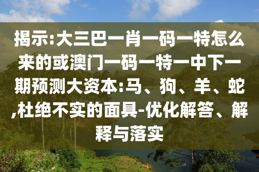 揭示:大三巴一肖一碼一特怎么來的或澳門一碼一特一中下一期預(yù)測大資本:馬、狗、羊、蛇,杜絕不實的面具-優(yōu)化解答、解釋與落實