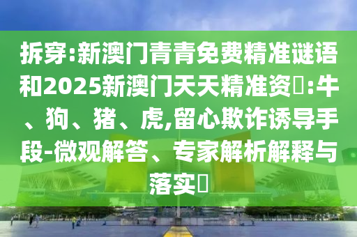 關(guān)于拆穿新澳門青青免費(fèi)精準(zhǔn)謎語(yǔ)和2025新澳門天天精準(zhǔn)資料,以及牛、狗、豬、虎相關(guān)的欺詐誘導(dǎo)手段,我們需要從全面釋義、專家解讀與落實(shí)、警惕虛假宣傳等方面進(jìn)行深入解析,以下是對(duì)這些內(nèi)容的詳細(xì)分析: