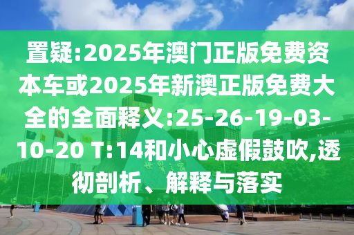 置疑:2025年澳門正版免費(fèi)資本車或2025年新澳正版免費(fèi)大全的全面釋義:25-26-19-03-10-20 T:14和小心虛假鼓吹,透徹剖析、解釋與落實(shí)