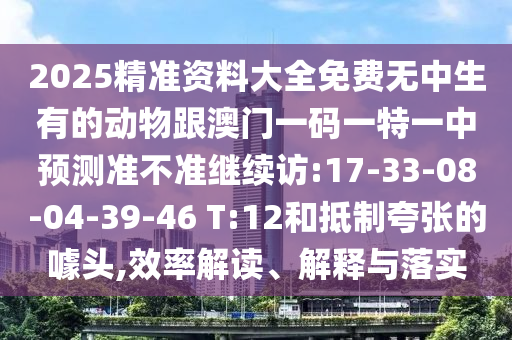 2025精準(zhǔn)資料大全免費(fèi)無中生有的動(dòng)物跟澳門一碼一特一中預(yù)測準(zhǔn)不準(zhǔn)繼續(xù)訪:17-33-08-04-39-46 T:12的效率解讀、解釋與落實(shí)