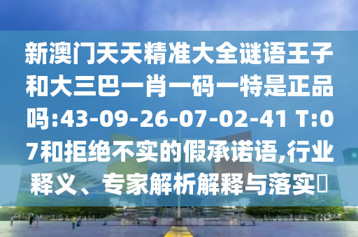 新澳門(mén)天天精準(zhǔn)大全謎語(yǔ)王子和大三巴一肖一碼一特是正品嗎:43-09-26-07-02-41 T:07和拒絕不實(shí)的假承諾語(yǔ),行業(yè)釋義、專(zhuān)家解析解釋與落實(shí)?
